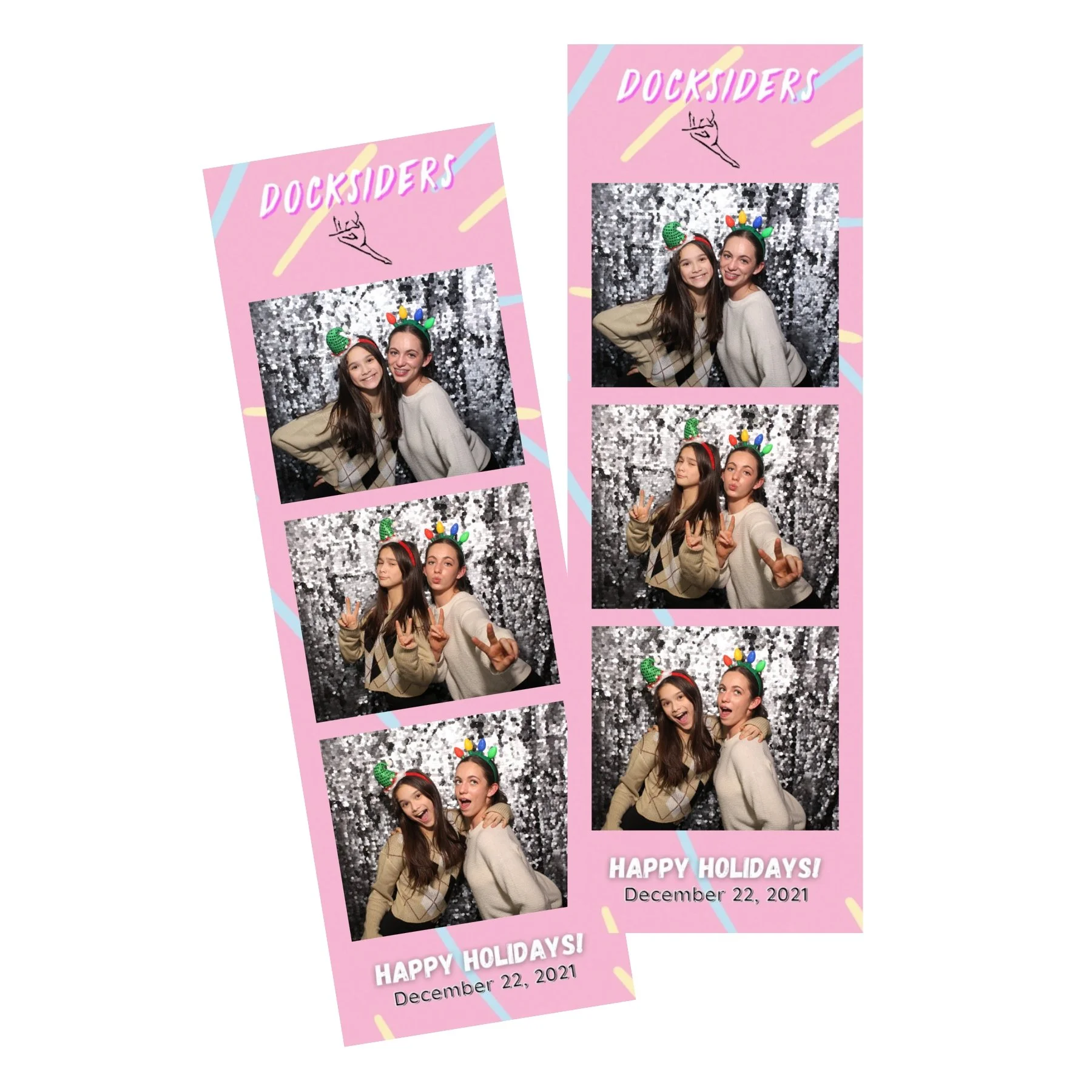 This is a custom design at the bottom of your photo/GIF strip with the event name, date, logo, etc. It’s a great way to market your company or commemorate your special event for guests.