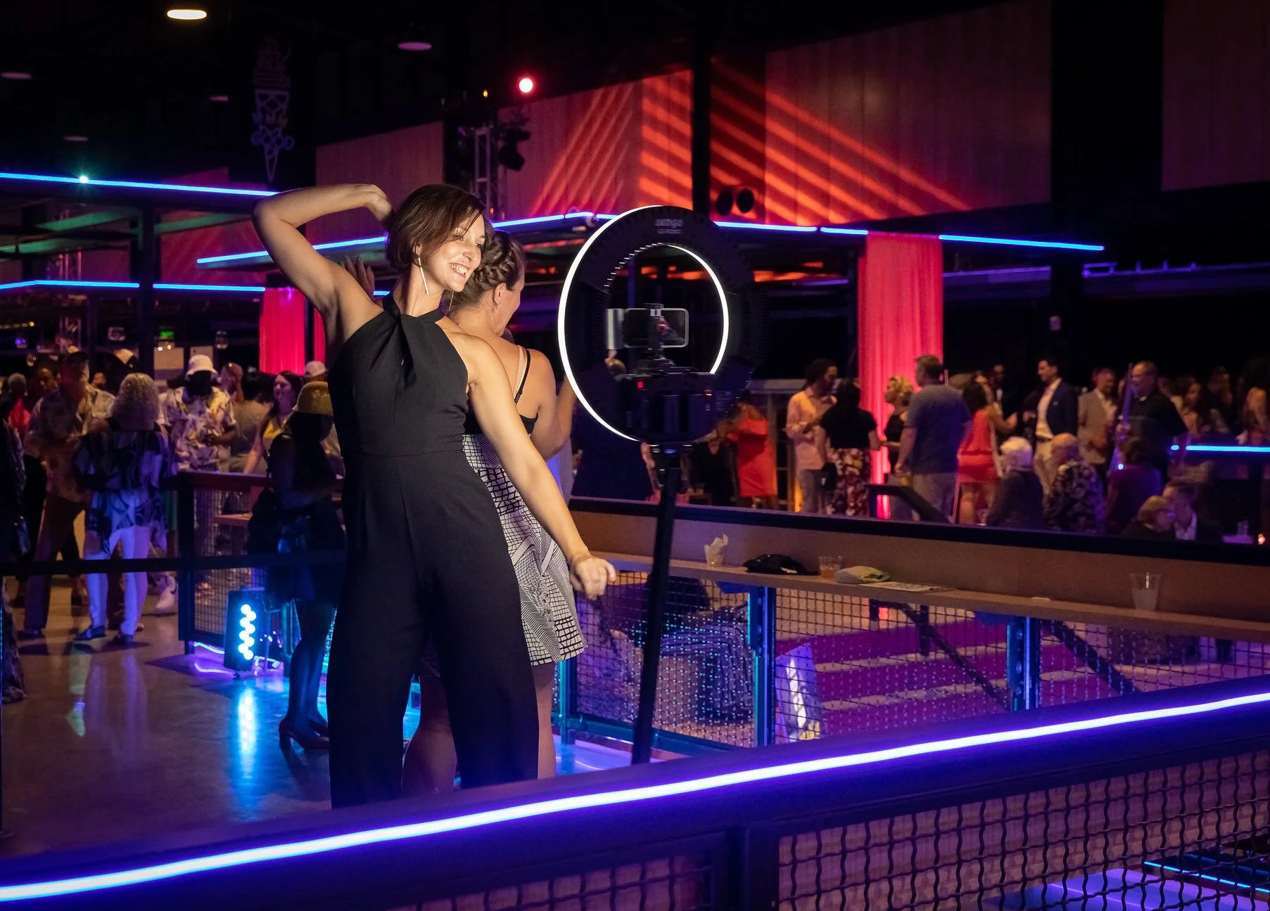 The 360 Spinner is the new hot photo booth on the market! 3-4 guests stand on a platform and a rotating camera will spin around them, collecting video that's then compiled into a fun .mp4 video that's sent to their phone or email. This video can be branded with an overlay to match the theme of your event!